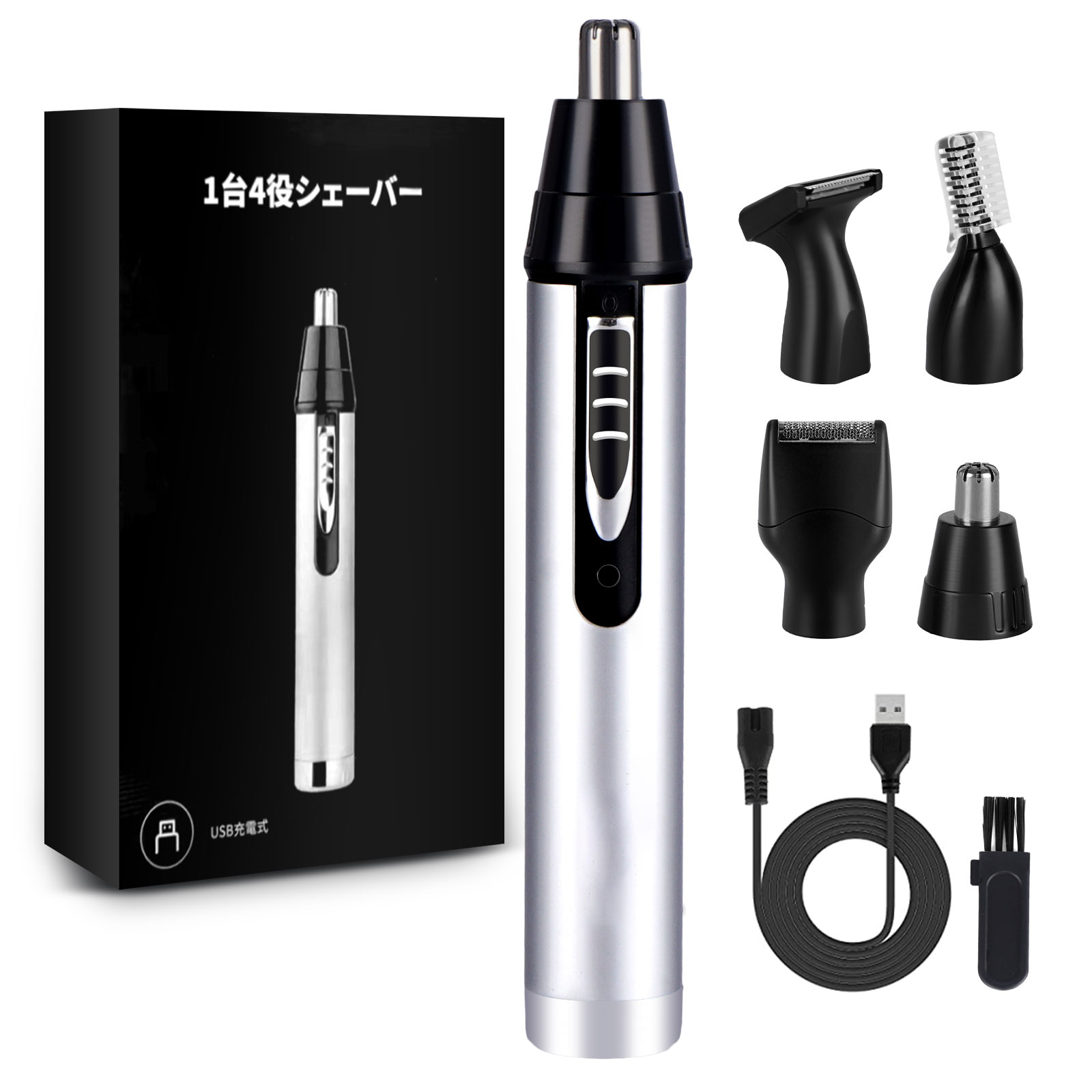 「送料無料」鼻毛カッター 男性用 水洗いOK 充電式 鼻毛切り フェイスシェーバー USB充電式 台座付き 1台4役 収納ベース付き バリカン ムダ毛処理 多機能 眉毛シェーバー 髭剃り 鼻毛抜き 低騒音 男女兼用 掃除用ブラシ付き メンズ おすすめ
