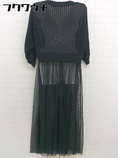 ◇ Andemiu アンデミュウ 裾チュール 長袖 ロング カーディガン サイズF ブラック レディース 【中古】