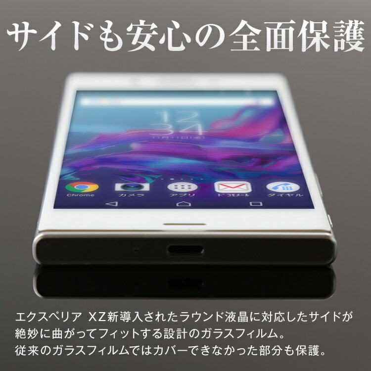 サイドも安心の全面保護エクスペリア XZ新導入されたラウンド液晶に対応したサイドが絶妙に曲がってフィットする設計のガラスフィルム。