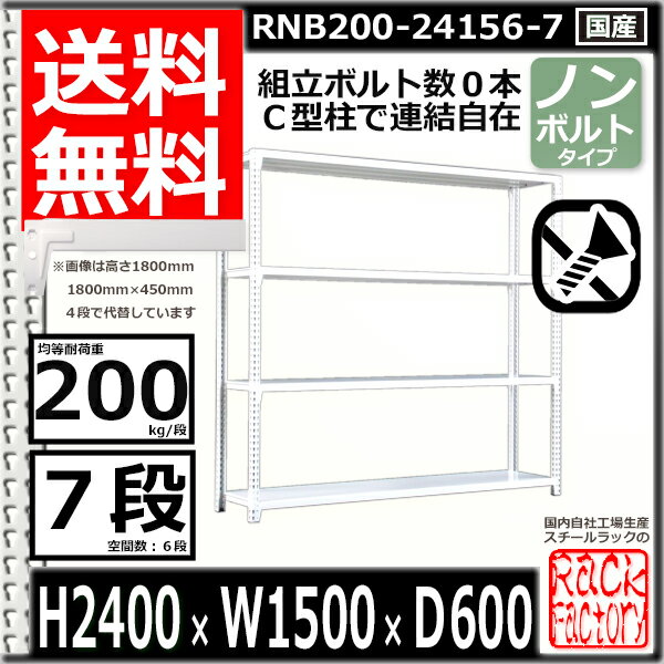 スチールラック 幅150×奥行60×高さ240cm 7段 耐荷重200/段 単体用(支柱4本) 幅150×D60×H240cm ボルト0本で組立やすい 中量棚 業務用 スチール棚 業務用 収納棚 整理棚 ラック