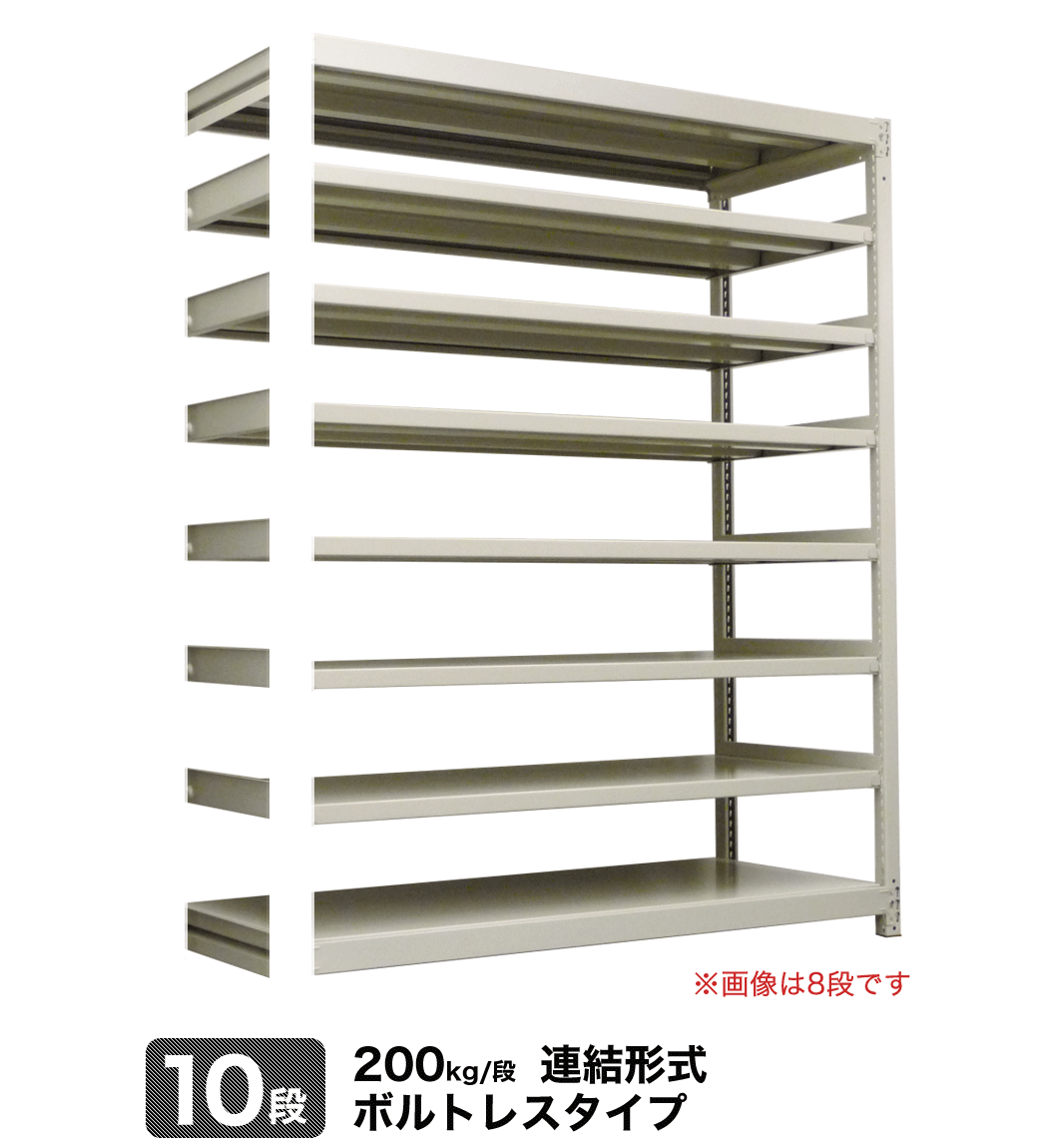 スチール棚 幅150×奥行30×高さ90cm 10段 連結 200kg/段 ボルトレス 重量:71kg