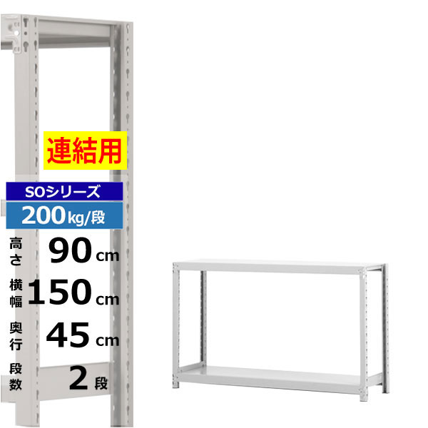 【クーポンあり】スチールラック 幅150 奥行45 高さ90 2段 増連形式 200kg/段 SOシリーズ業務用 スチール棚 ボルトレス 軽中量棚 ラック 棚 収納棚 収納ラックオープンラック スチールシェルフ 整理棚 送料無料