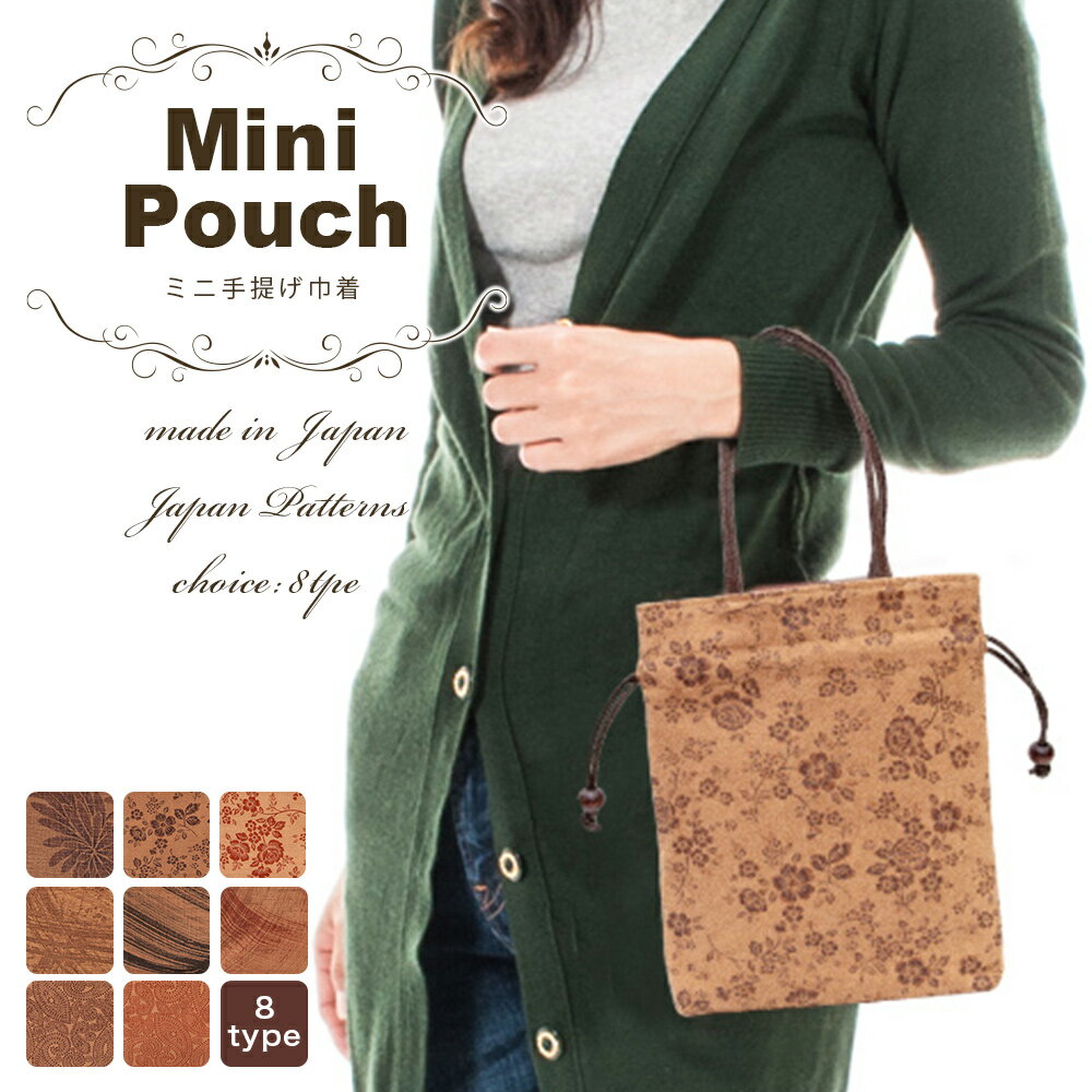 【送料無料】手提げ 巾着 レディース トートバッグ 軽量ミニ手提げ巾着 日本製 柿渋染 軽い鞄をお探しの方に,ちょとしたお出かけ、旅行のサブバッグに人気です! 敬老の日 プレゼント ブラウン 花柄 無地 布 帆布 お祭り 花火 浴衣 茶色 お土産 和小物[くれあーれきき]KS-112