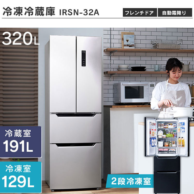 コースごとに最適な洗い方で洗浄力UP!【冷凍冷蔵庫 320L IRSN-32A 全2色】ファン式自動霜取り冷凍冷蔵庫320L(冷蔵室:191L/冷凍室:129L)。