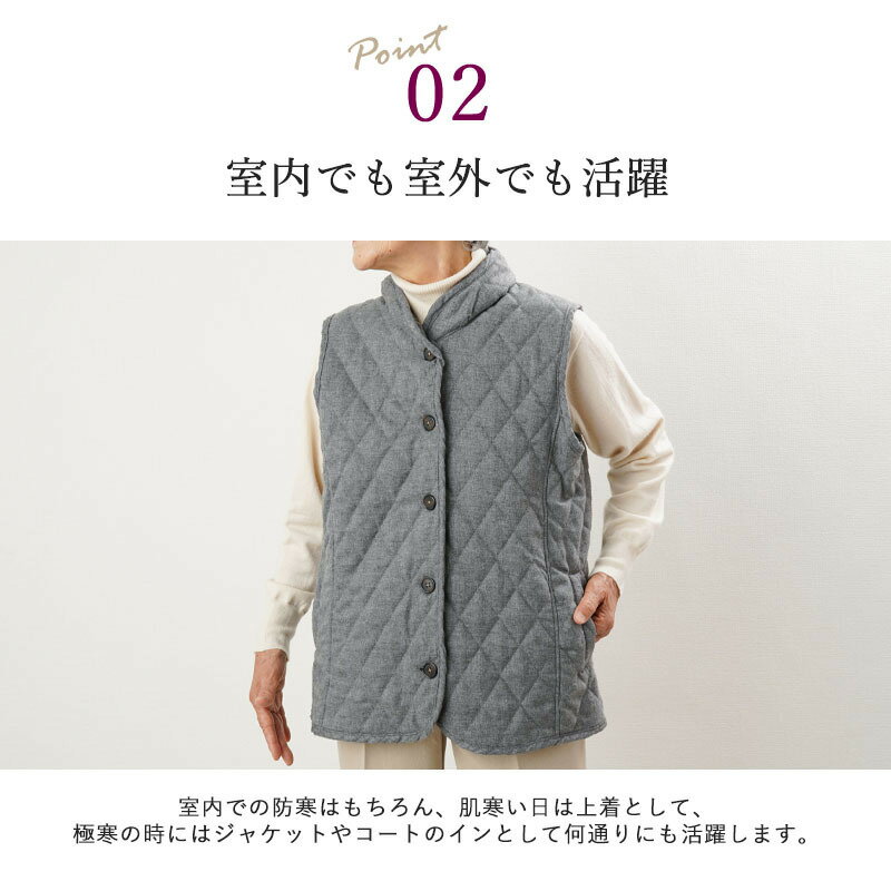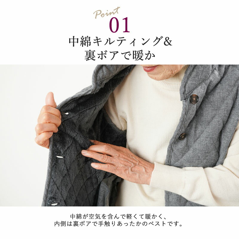 シニアファッション レディース 80代 70代 60代 90代 秋冬 杢調中綿キルティング裏ボアベスト おばあちゃん 服 プレゼント 婦人服 女性 ミセス 祖母 お年寄り 老人 高齢者 敬老の日 プレゼント ギフト