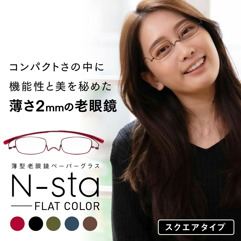 老眼鏡ペーパーグラス Nスタ ベーシック【スクエア +1.0〜+4.0】 薄型 携帯ケース付 軽い おしゃれ 可愛い かわいい レディース メンズ 男性 女性 スリム コンパクト 栞のように薄い リーディンググラス シニアグラス 鼻パッドなし 鯖江 誕生日 敬老の日 プレゼント 詳しく見る