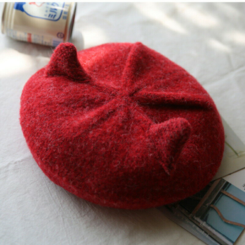 可愛いニット帽子 レディース ベレー帽 猫耳付き カジュアル 厚手 防寒対策 暖かい 小顔効果 アウトドア 女性用 きれいめ おしゃれ 送料無料