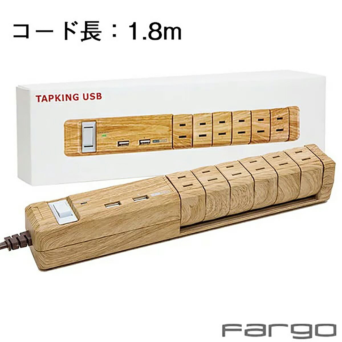 7週連続ランキング1位/週 2USB+AC6口 3.4A 急速充電 1.8m 回転 延長コード 木目 おしゃれ インテリア 電源タップ タコ足配線 コンセント usb 携帯充電 テレワーク OAタップ マルチタップ テーブルタップ 雷サージ 隠す 収納 北欧 和風 ファーゴ fargo お盆