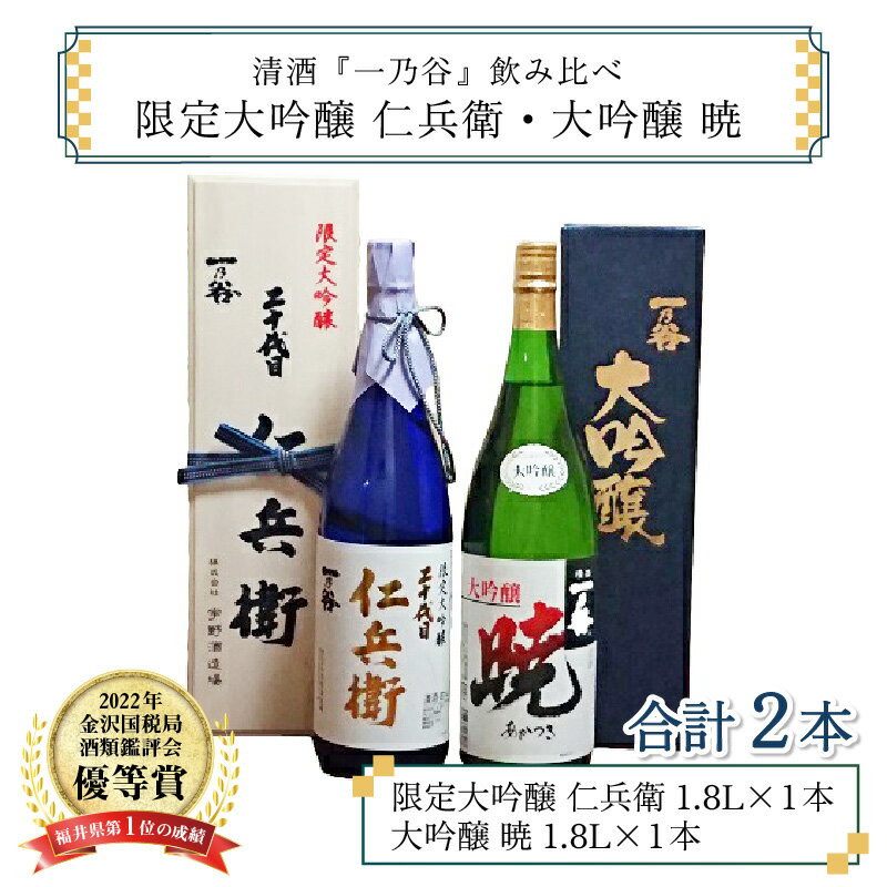 【ふるさと納税】奥越前大野 日本酒 清酒『一乃谷』限定大吟醸 仁兵衛・大吟醸 暁 飲み比べ 1.8L × 2本【お酒・日本酒・大吟醸酒】 [E-046001]