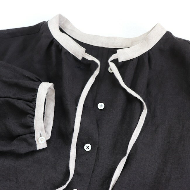 ⇒アップルハウスの採寸方法のご案内 ⇒お手入れについてのご案内衿とカフスの配色使いがおしゃれなブラウス。