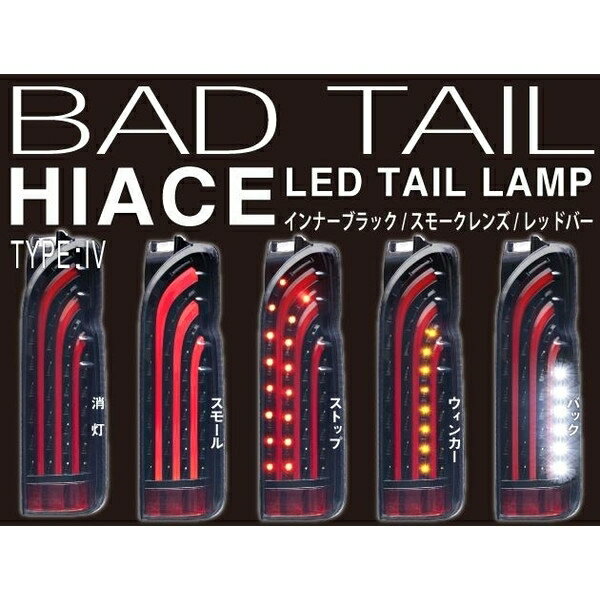 ■ブランド名 :415 STUDIO DESIGN ■商品名:4型 バッドテール(BAD TAIL) ■カラー:インナーブラック / ライトスモークレンズ / ホワイトバー ■対応車種 :200系 HIACE(1〜4型共通) ■保安基準適合商品(Eマーク取得商品) ■希望小売価格:オープンプライス ■保証;メーカー1年保証