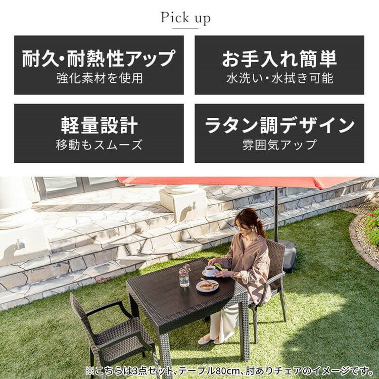 【特長】・ラタン調デザインがアクセントとなったガーデン3点セットです。