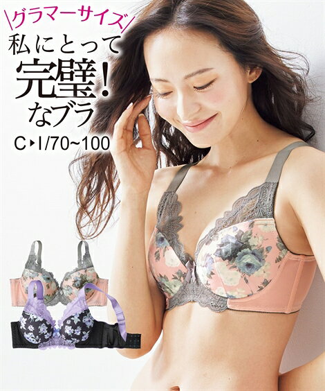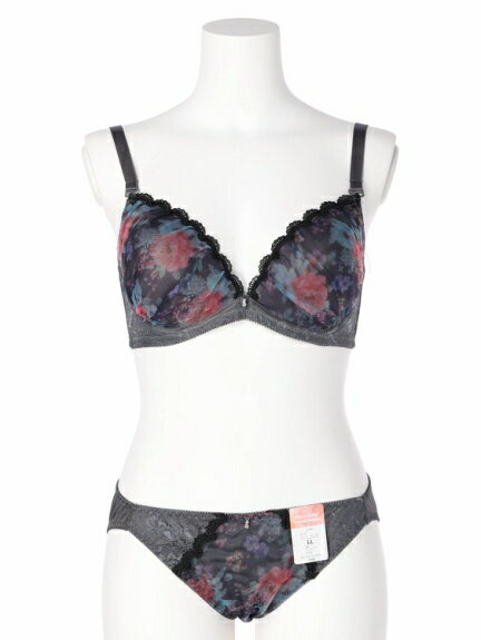 大きいサイズ レディース 【Re-J&SUPURE】フラワープリントブラ&ショーツD85 D90 D95 E85 E90 E95 F85 F90 F95 G85 G90 G95 H85 H90 H95 85I 90I 95I ブラ ショーツ セット ブラジャー ブラジャーセット ブラショーツ 大人 可愛い かわいい 花 レース 上品 ピンク 黒