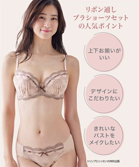 ブラジャー&ショーツセット リボン通しブラ・ショーツセット( トリンプ ) ニッセン nissen